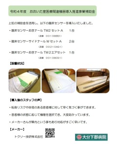 令和4年度 おおいた産医療関連機器導入推進事業補助金を活用し、離床センサーを導入しました。